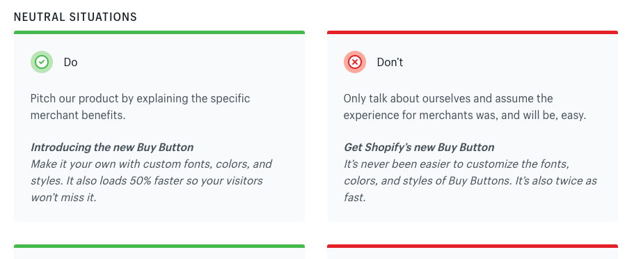Así lo recoge Shopify en su guía de estilo: