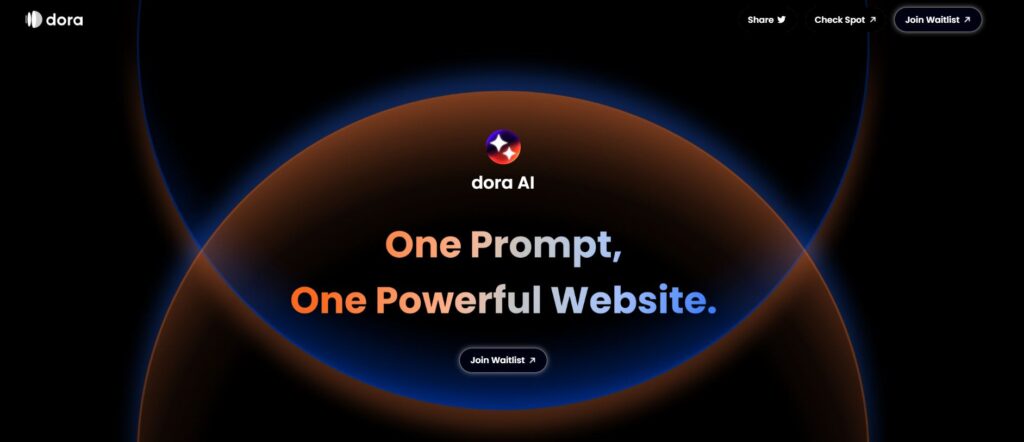 Un método similar es el que utiliza la plataforma Dora AI, en la que es posible crear entornos web altamente interactivos a partir de una única frase o prompt. El sistema genera una interfaz editable, que permite modificar todos los elementos de forma manual o solicitar cambios específicos mediante una nueva orden escrita.