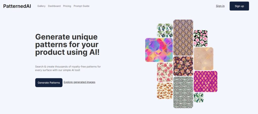 Pensado para quienes buscan un estilo visual más concreto, PatternedAI crea patrones de diseño originales para implementar en cualquier entorno. Pueden utilizarse como elemento gráfico en una app o página web, pero también son un buen recurso para el diseño de productos y packaging.