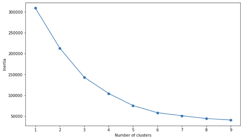 La curva del codo no siempre muestra una punta clara y definida en el que la inercia cambia drásticamente. En nuestro caso concreto, aparece un suave codo en el valor 5 clusters. Esto implica que aumentar el número de clusters más allá de 5 puede significar complicar en exceso el análisis por añadir demasiada complejidad. Mientras que un punto de codo pronunciado suele significar un número óptimo de clusters, la ausencia de una punta clara sugiere que determinar el número ideal de clusters requerirá conocimiento del contexto y del negocio.