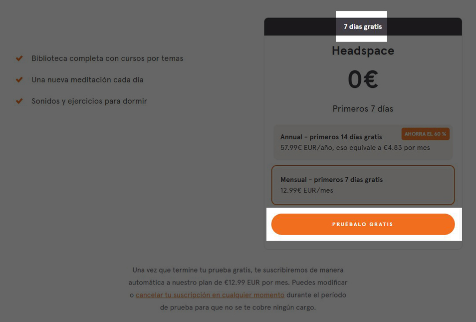Muestra siempre las opciones de cancelar, pausar o modificar la suscripción: la sensación de control es clave para la conversión.