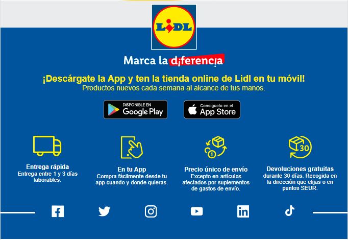 This element has some basic legal requirements, like the need to include contact methods and the option to unsubscribe from company emails. However, it also presents an opportunity to add complementary elements, such as links to social media, the brand slogan, a discount code, or the location of points of sale.